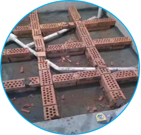 ③ 鋪鋼絲網(wǎng):在磚格子上布一層由直徑8mm左右的鋼筋組成的30×30cm的鋼筋網(wǎng),以保證上層混凝土的牢固,受力均勻且不下墜。